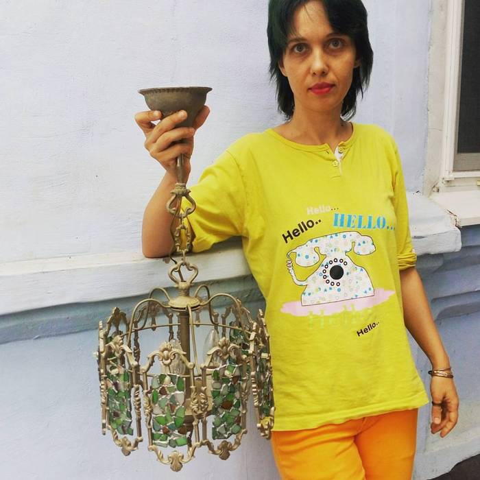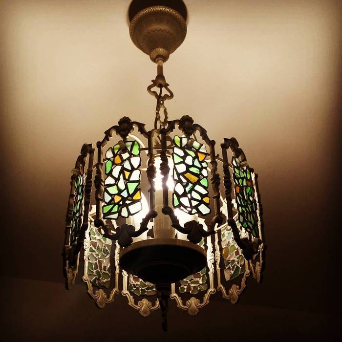 Портрет с люстрой! Клевая металлическая, пластинки на месте витражных раньше были прозрачные и не все...