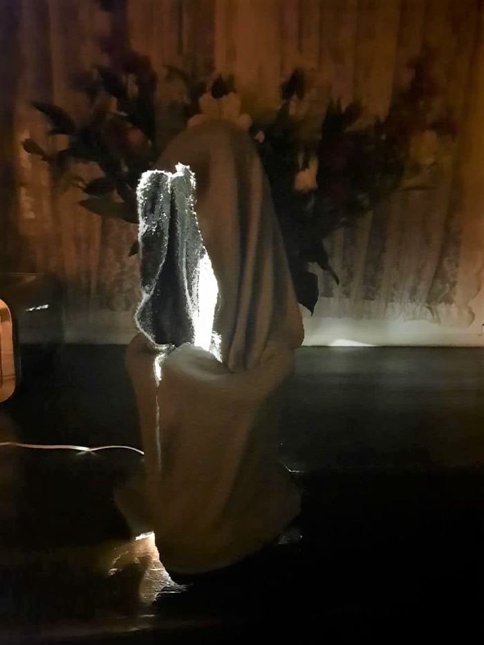 Поглядев по сторонам я заприметил старую шумовку, посветив фонариком через неё я получил абстрактные пятна на фоне, подходит! Фонарик не очень мощный, поэтому взял ещё одну лампу, светодиодную. От неё пришлось отделить рассеиватель, чтобы получить жёсткий свет.