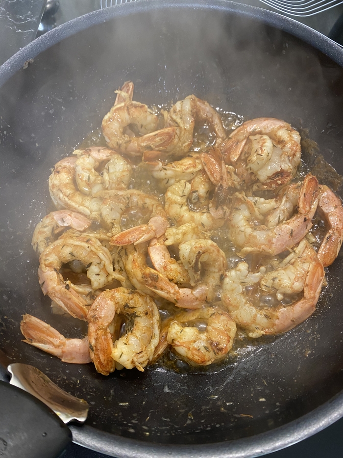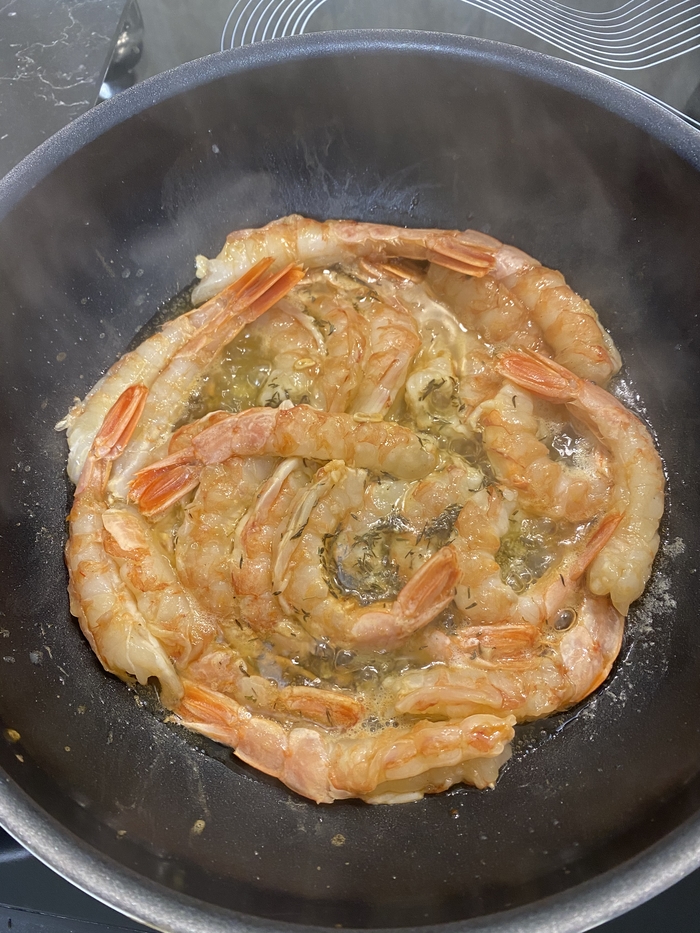 Лангустины готовы, особенно люблю макать их в лимонный сок, но в соус в сковородке очень даже ничего.