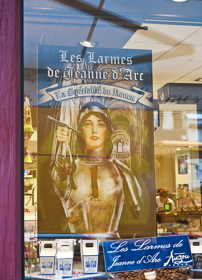 Вы же помните, что в Руане всё "крутится" вокруг Жанны д’Арк ? :) Так вот, магазин, где продают солёные ирисовые конфеты с названием "Слёзы Жанны д’Арк" ! :) Да, вот так !