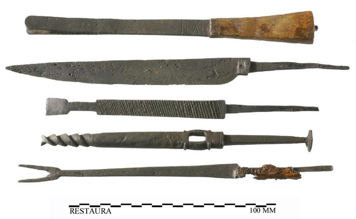 Характерные черты имеют и ножны кацбальгера, изготавливаемые традиционно из кожи - во-первых, это скоба в форме подковы на конце, а во-вторых, дополнительные отделения под дополнительный инструмент - от столовых ножей до целого ассортимента слесарного инструмента, необходимого в походе.