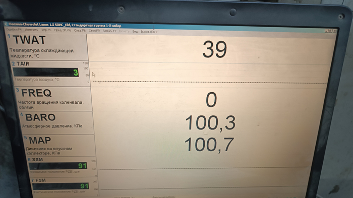 Ошибок нет. Запускаем двигатель и смотрим на обороты. Они равны полутора тысячам.