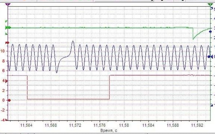 А это значит, что у нас нет претензий к датчику положения дроссельной заслонки, ведь наличие флага холостого хода говорит нам о том, что в момент, когда дроссельная заслонка закрыта, он, как и положено, показывает 0 процентов её открытия. Такого параметра в ЭБУ нашего пациента конечно нет, но сделать подобный вывод мы можем и по напряжению на выходе датчика.