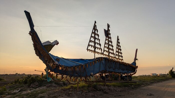 Через какое-то время мне удалось вырваться из круга, я нашёл Грету, а наш мужик с женой уже куда-то потерялись. Мне стало очень интересно, что же за праздник в деревне? Не уж то они моё день рождения отмечают?))) Тут то мы во дворе увидели 2 яркоукрашенных гроба и фотографии перед ними. (Фотоаппарата у меня в тот момент не было, но вот я что-то похожее уже в Лаосе видел)