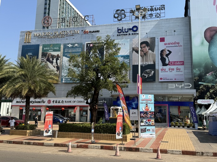 При этом на улицах хватает космически дорогих по местным меркам новых машин. В основном это китайские электромобили. А на следующих фото – самое модное здание в Лаосской столице, Cultural Hall, то есть дворец культуры. Правда, на втором фото видно его состояние – территория закрыта на клюшку, кругом мусор.
