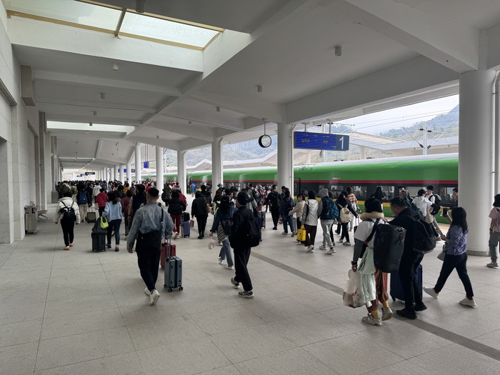 Куньминь-Южный, проверка билетов на поезд D87 Куньминь- Вьентян
