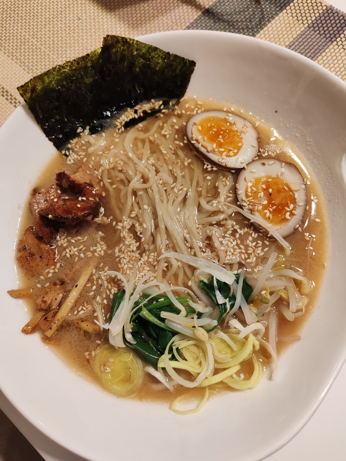 Уже во время приготовления, пока внутри всё пыхтит и парит по лаборатории разносятся сумасшедшие ароматы. Хорошенько всё перемешав, снимаем пробу. Я начал с Малатана. Бульончик очень классный. Начнём с того, что он просто красивый! Белый, с ярко-красными капельками жира. В нём отлично сошлись и пряность специй, и нежность молока, и вяжущая терпкость арахисовой пасты. При том он не острый в привычном понимании. Немного немеет язык и губы от сычуаньского перца. В общем твёрдая пятёрка. Остальное наполнение также порадовало. Хрустящие овощи. Достаточно мягкая картошечка. Юба двух разных видов. Отличная лапшичка. Ну и мясная составляющая очень даже. Ветчина огонь! Шарики своеобразные, но тоже вкусные. Второе блюдо имеет значительно более насыщенный бульон. Очень жирный. Пряный. Во вкусе прям чувствуется сильный мясной дух. Острота тут тоже на достаточно высоком уровне. Не менее трёх островатт. А ведь это ещё без добавления острого масла. Данный бульон прекрасно согревает в этот морозный день. В принципе, все остальные компоненты, которые были в первом блюде также отлично играют и здесь. Единственное, что многовато корня лотоса, к которому лично я отношусь не очень. Но на вкус и цвет все фломастеры разные. Отдельно отмечу свинину в панировке. Её действительно много и она вкусна. Очень мягкая, нежная. По вкусу немного напоминает тушёнку.