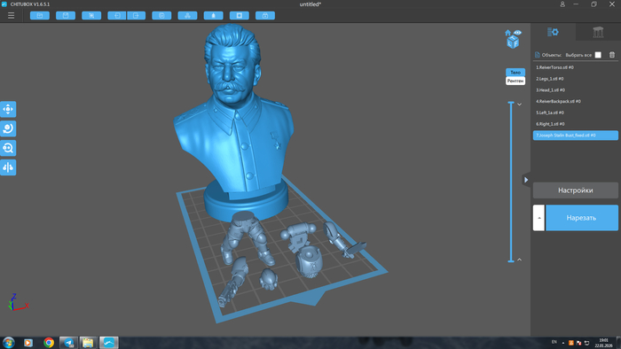 Пройдя по каналам в телеге и найдя бюст Сталина и сборную по частям модельку рэйвера из вахи на скорую руку в слайсере сляпывается это: (мои навыки 3д моделирования не позволяют делать красиво)