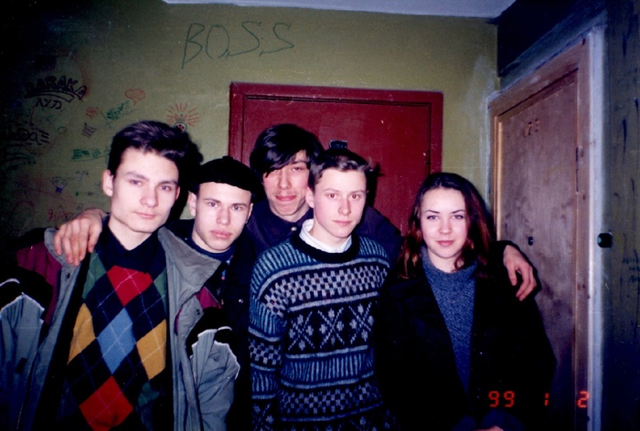 В центре Андрей Цыганов "Мистер Малой" (1992 год). Мистер Малой — один из первых российских рэперов, ставший для многих главной ассоциацией со словом «рэп». В 1992 году записал хит «Буду погибать молодым» и проник в эфиры центральных телеканалов и радиостанций страны. Первый концерт состоялся в 1992-м в ДК им. Ленсовета, его творчество было хорошо воспринято. Потом снял клип «Буду погибать молодым» за 150 долларов. В 1994 году занял второе место на всероссийском фестивале «Поколение-94», в 1995 году по мнению большинства деятелей музыкальной индустрии был назван «Лучшим артистом года». Позднее основной русскоязычный рэп-ресурс, Rap.ru, включил альбом «Буду погибать молодым» в список «Главные альбомы русского рэпа». Альбом «Буду погибать молодым» разошёлся многомиллионным тиражом и был неоднократно переиздан.На первой волне популярности в 90-е Цыганов бросил школу и пристрастился к алкоголю и наркотикам. Пагубные привычки сыграли с певцом злую шутку - уже к концу 90-х контракт с продюсером певца был расторгнут, гастрольная деятельность прекратилась, а доходы с последующих альбомов были незначительные.(Википедия).
