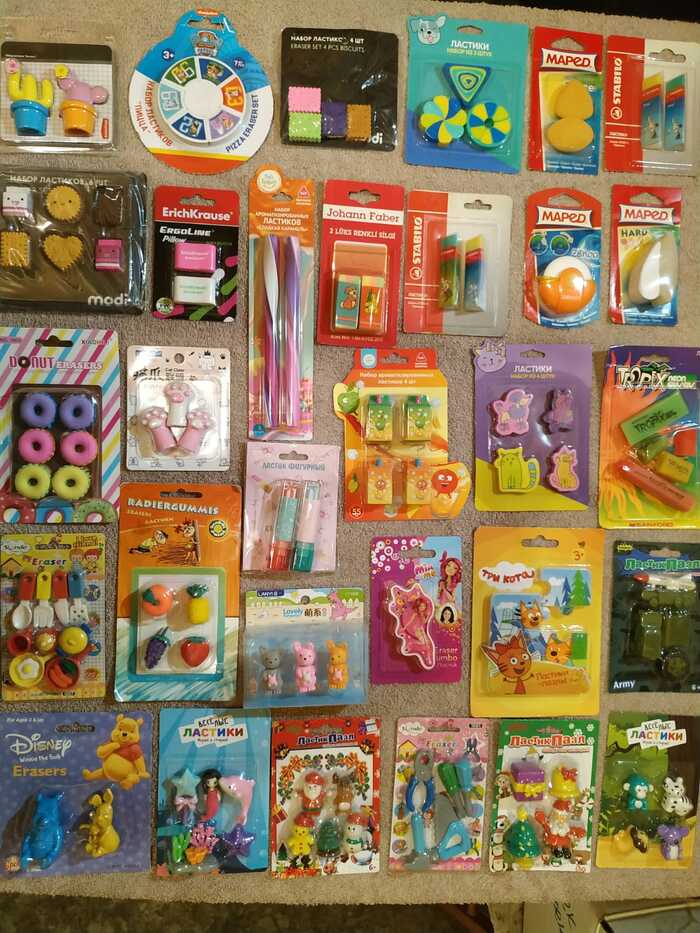 Пы.Пы.Сы. На фото есть повторы, их немного, разбирала ластики из коробок и фоткала я постепенно, и убирала сразу (места мало).