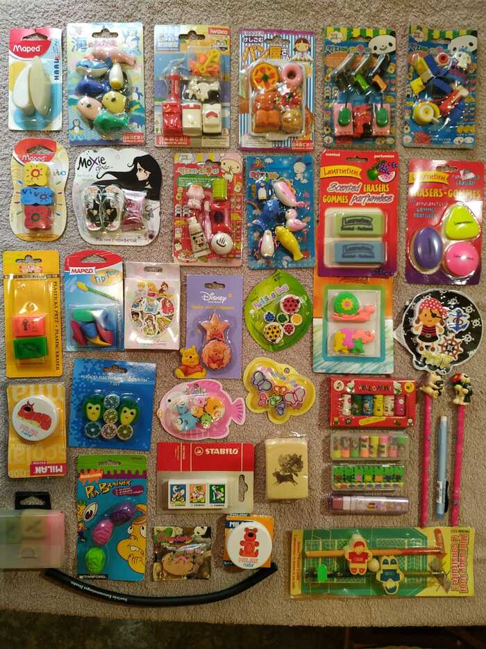 В далёких восьмидесятых, мне, двенадцатилетней пятикласснице, подарили ластик. Иностранный, неземной красоты..он даже пах по заграничному. Я брала его в школу, что бы поделиться с одноклассниками своей радостью и наслаждалась крутизной момента. Сейчас смешно вспоминать, но тогда, при совке, это было моё личное, маленькое красивое счастье. Шли годы, менялась жизнь, грянула перестройка. И вместе с ней к нам хлынул поток всякого-разного, разнообразного всего. Но в моём сердце осталась та, первая любовь к ластикам. И возможность увеличить свою коллекцию, состоявшую из красавца и нескольких страшненьких советских резиновых гадов, которые стирали бумагу вместо карандаша. Прошло еще несколько лет, все мои знакомые и друзья знали (я достаточно навязчиво напоминала им об этом) что привезти мне в подарок из разных поездок. У меня есть ластики из Лондона и из музея Шерлока Холмса , из Вьетнама, Франции, Италии, Германии и даже уже не вспомню откуда ещё. И вот я совсем взрослая женщина, которой до полтинника уже ближе, чем до сорока, всё так же, заходя в магазины, зорко высматриваю отделы с канцтоварами. Правда, уже несколько придирчиво, выбираю что-то действительно интересное. За май литл пони и смешариками мне не угнаться финансово.