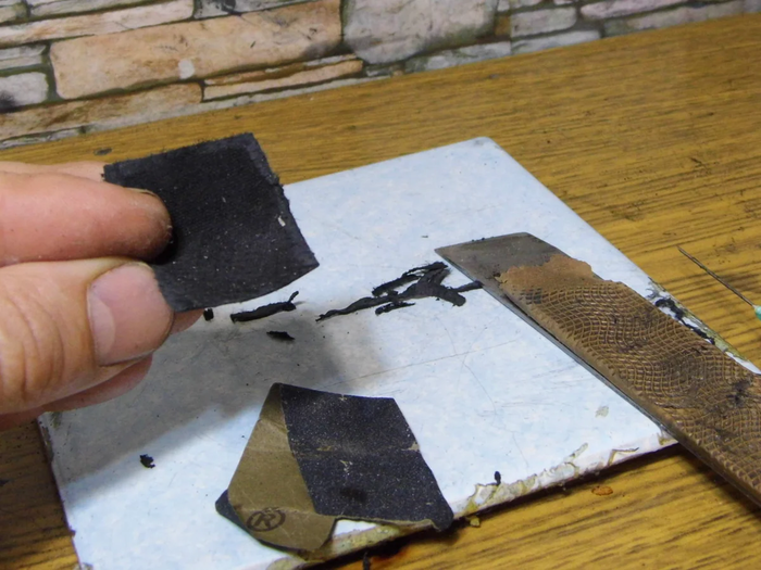 Если верх цел, значит латка не нужна. Будем клеить. Зачищаем место приклейки.