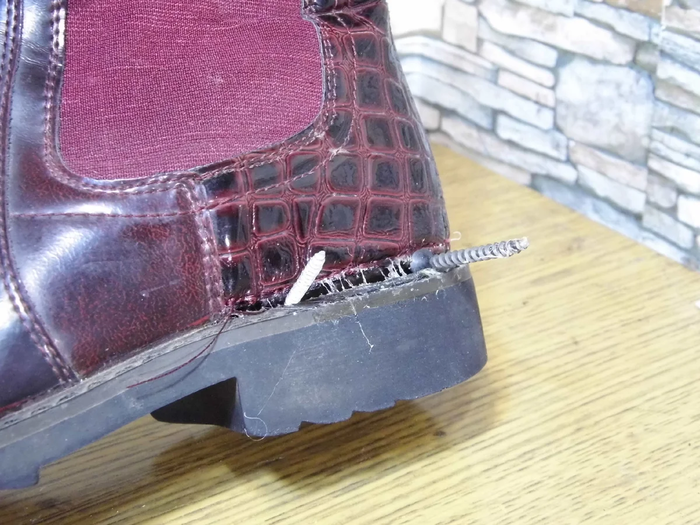 Если специально не искать и не отгибать верх от подошвы, это повреждение со стороны не заметно.
