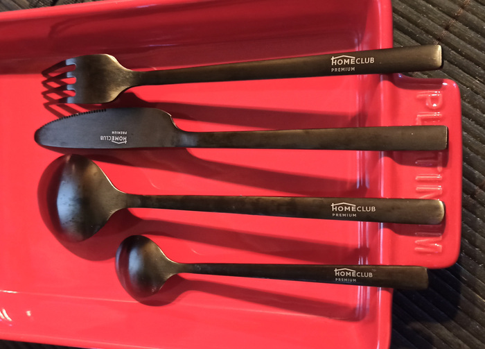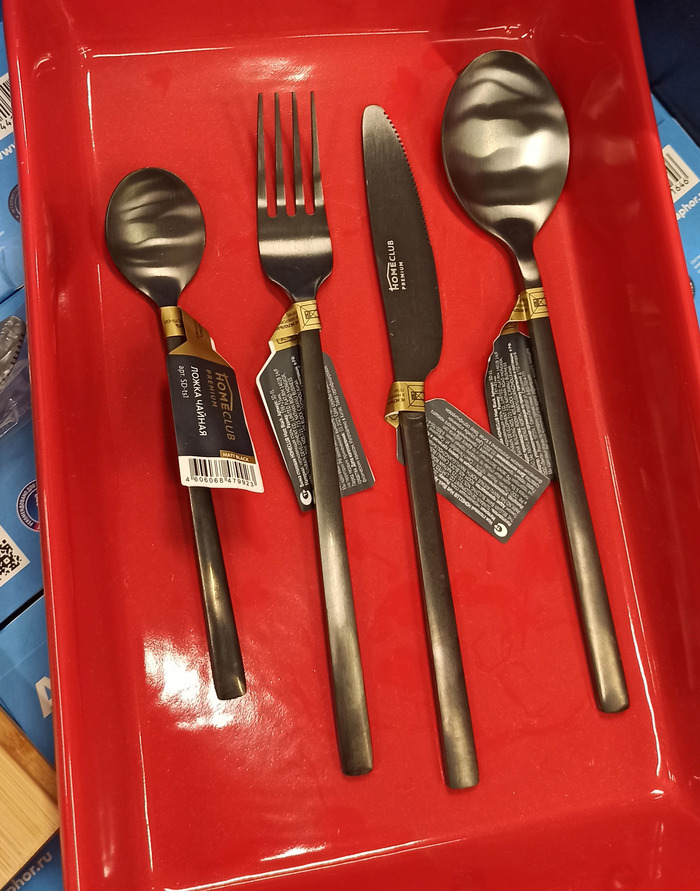 [моё] Санкт-Петербург Еда Сервировка Дизайн Красное и черное Столовые приборы Гипермаркет Лента Латка Интерьер Декор Длиннопост Стильно Фотография