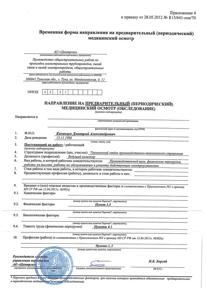 12 декабря я все мед. заключения получил и направил в отдел кадров (Ольге Сергеевне) о том что я годен и отклонений не имею.