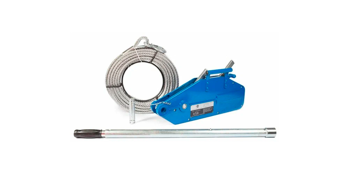 Корпус выполнен из прочной стали с антикоррозийным покрытием, а в комплекте предусмотрен трос длиной 20 метров с надёжным крюком. Устройство работает по принципу рычажного механизма, не требует подключения к электросети и показывает отличную выживаемость даже при минусовых температурах. При должном уходе модель служит не менее 5 лет без серьёзных поломок.