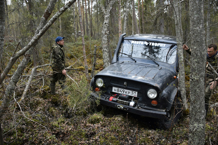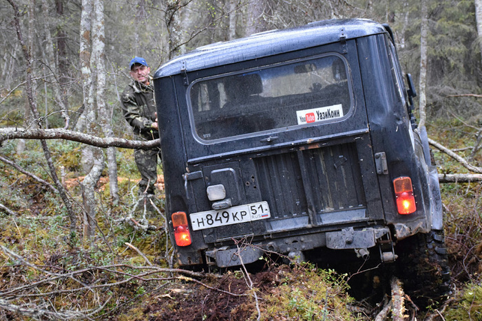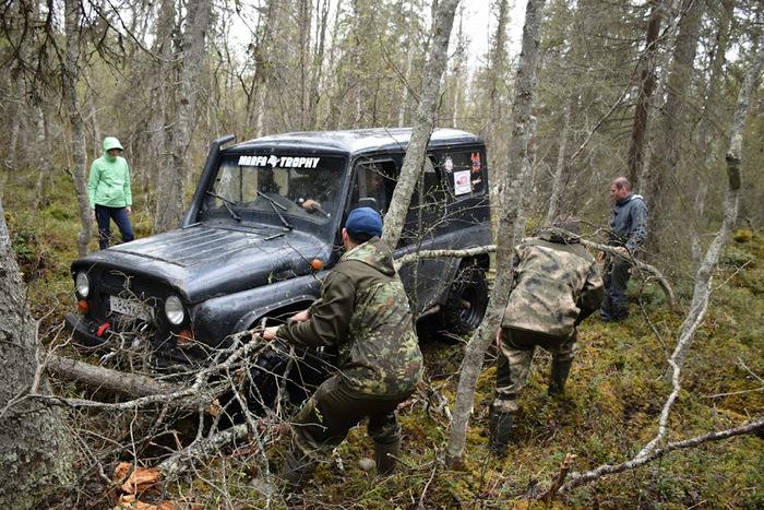 Буду краток, писать про каждую точку смысла не вижу, это можно кожу на пальцах стереть, но было весело. Были интересные точки, к которым надо было ехать по берегу около 100 метров, были точки и в болоте, и Магаданский лесоповал мы никогда не забудем, он надолго останется в нашей памяти. Столько пней и коряг я никогда не видел. Кстати мы на этом месте умудрились потерять правый бак у УАЗа. В этом инциденте виноваты все: повлияла и усталость, и спешка и невнимательность всего экипажа в целом!