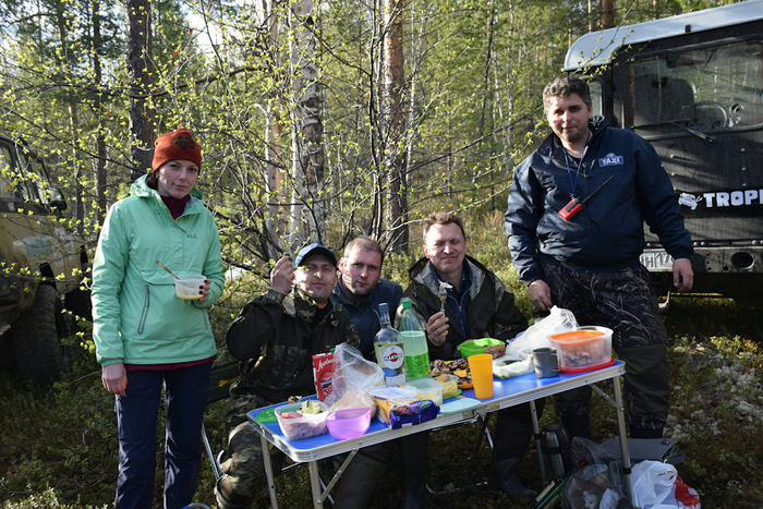 На данное мероприятие нас поехало участвовать 2 машины (Дэф и УАЗ), 2 водителя (Леха и Гриша), 2 штурмана (Андрей и Я) и 2 оператора, чтобы было, что вспомнить (Таня и Инна)! Короче в каждой машине по 3 человека. Но до базового лагеря мы двигались на 3х машинах, был еще с нами АрктикТрак. У него на данном мероприятии была самая важная цель, он был кладовкой и полевой кухней. Короче, мы в него сгрузили все лишнее из остальных машин, и большую часть еды оставили тоже в нем, чтобы был стимул быстрее вернуться в лагерь.
