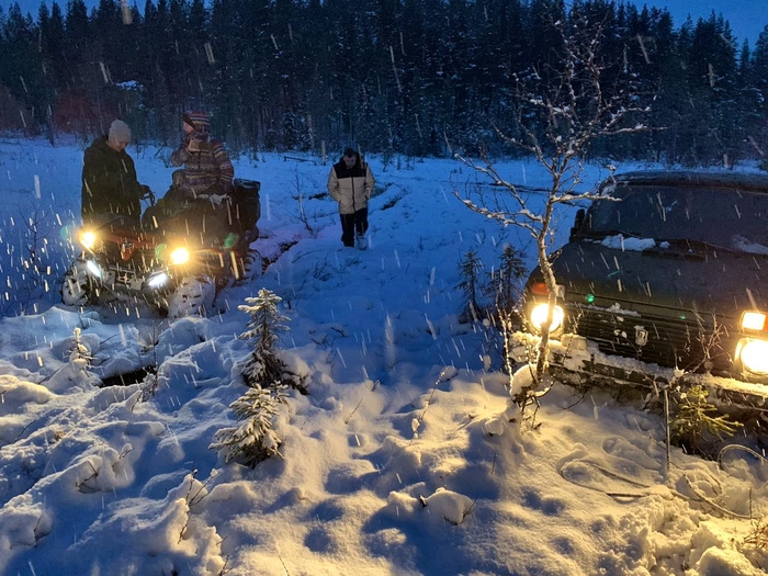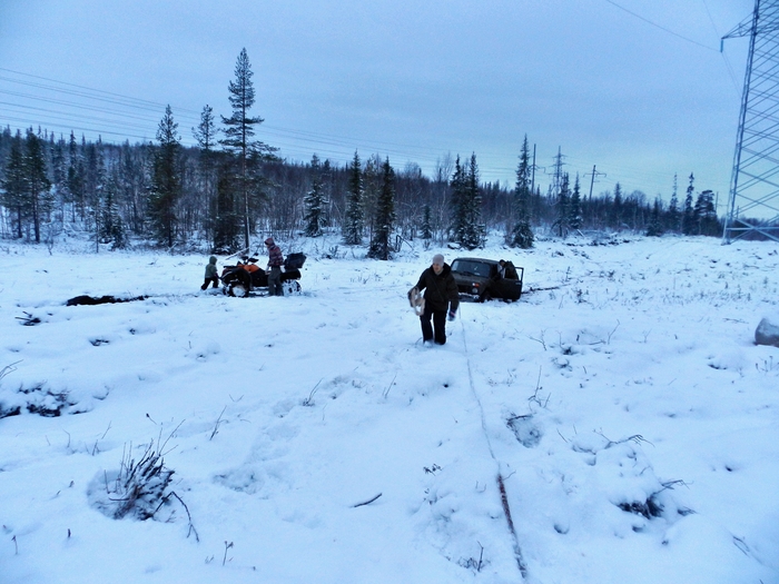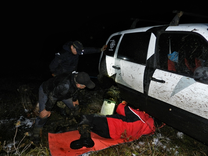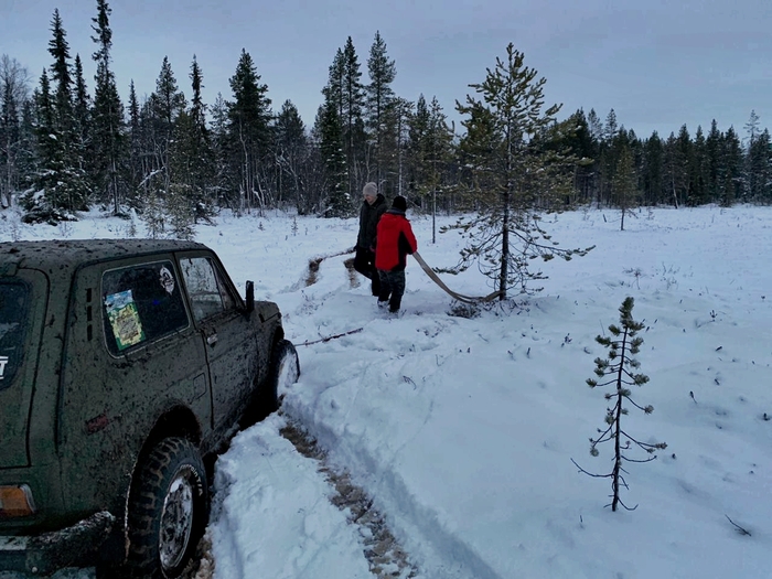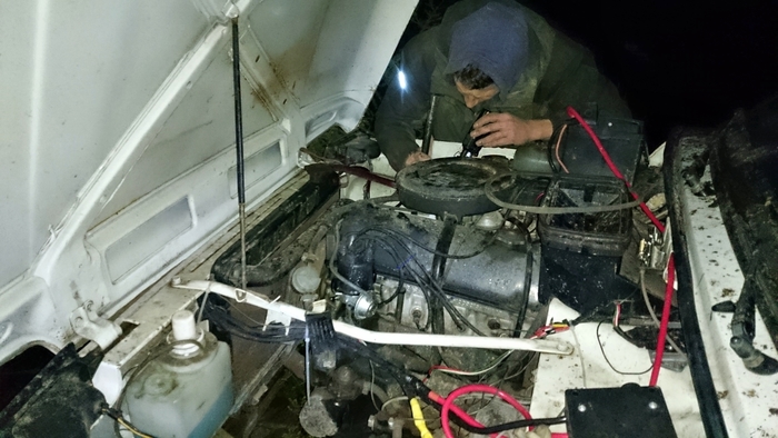 И вот на следующий день мы собираем все троса (около 40 метров), берем новый генератор, запасное колесо и едем на спасательную операцию!