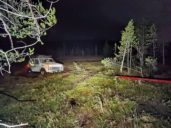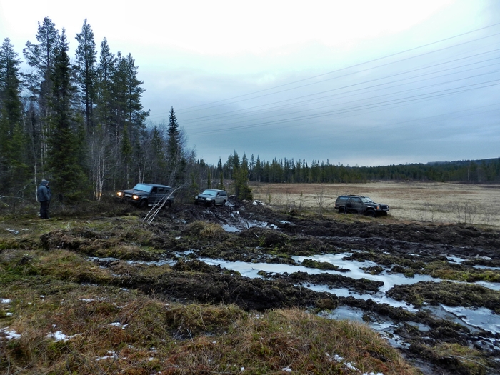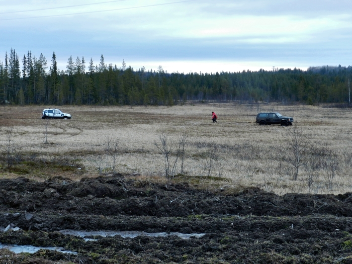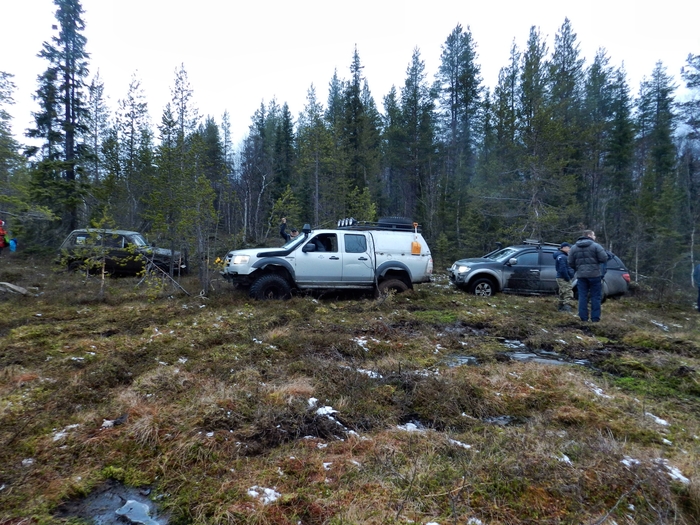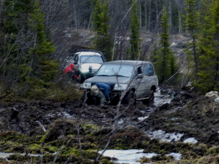 Уже с первых метров было ясно, что без лебедки автомобиль ехать не будет, и в итоге несколько машин поехало на другую сторону выступать в роли якорей... В последствии якорь в роли 105-го Крузака просидел с болоте около 3 часов, после чего был спасен!