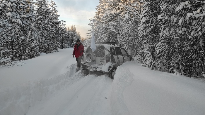 Снега реально многовато, решетки радиатора забиваются, авто греются, но мы не отступаем!