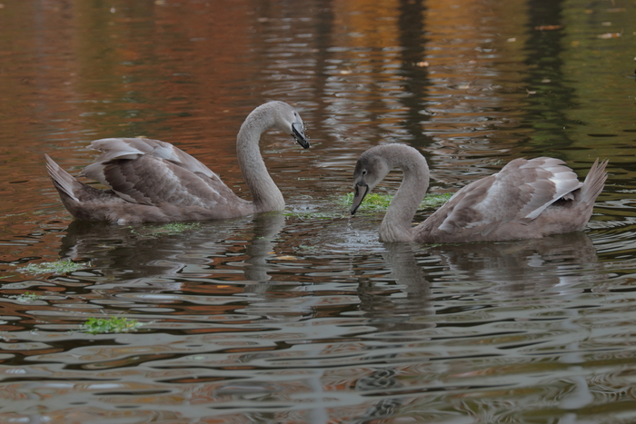 Птенцы лебедей у нас встречаются настолько нечасто, что я даже не сразу понял, что вот эти серые лебеди – это они и есть. 👀
