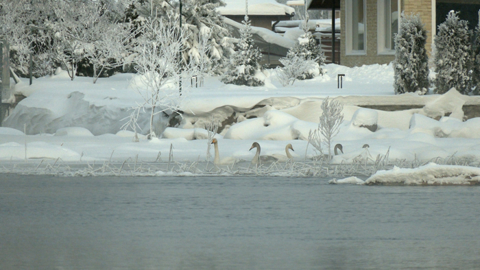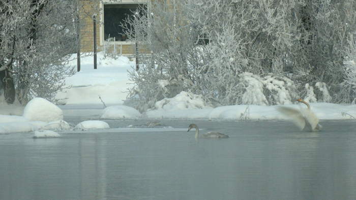 Лесные новости от Павла Глазкова/Каждой твари по паре.На реке Вуоксе, прямо в центре Приозерска, опять появились лебеди-кликуны! Сейчас здесь плавает около 20 птиц, но есть вероятность, что с усилением морозов их количество будет увеличиваться. Прошлой зимой в этом месте оставалось более 50 лебедей! Традиционно кликуны проводят холодное время года в Западной Европе. Ещё недавно никто не поверил бы, что они могут зимовать в Ленинградской области! Между тем, именно в Приозерске, на Вуоксе, более 10 лет назад осталась первая пара лебедей. После успешного опыта, скорее всего, именно эти пернатые вновь здесь, уже со своим потомством. На следующий год к ним присоединилось ещё несколько семей, и число зимующих лебедей постоянно увеличивается. Если присмотреться, видно, что птицы держатся семьями. Родители имеют белоснежную окраску, а у молодежи оперение грязно-серое (вспомним сказку про «гадкого утенка»). К концу второго года жизни у молодых птиц серыми остаются только голова и шея. А королевским – снежно-белым – оперение кликуна становится лишь на третий год жизни.