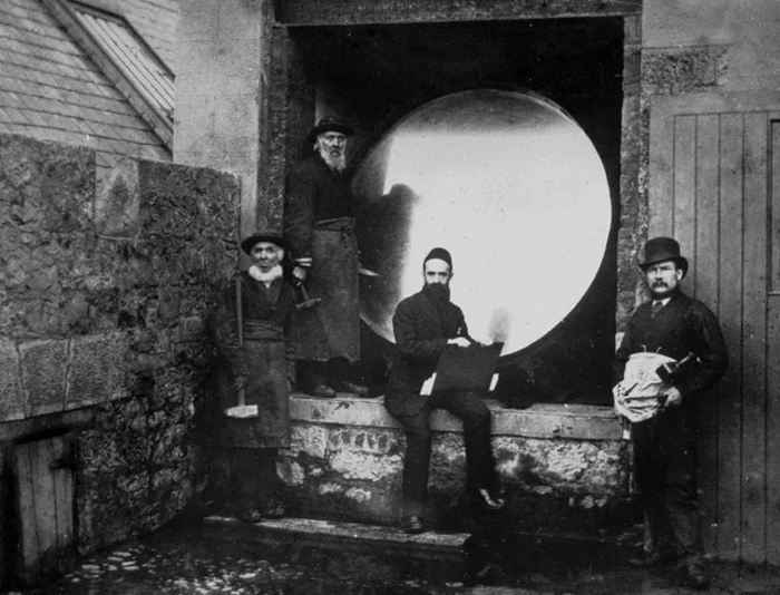 Семья Парсонса внутри трубы телескопа: во время строительства.