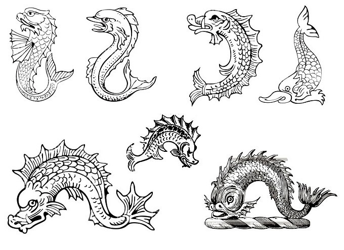 Целые дискуссии открывались, на тему того, что раньше не делали особых различий — рыба-кит она и есть рыба-кит. А вот очень к месту цитата из словаря эмблематики В.Похлебкина — «В старой западноевропейской геральдике к рыбам относили ошибочно Левиафана (чудо-юдо рыба-кит) и дельфина, который часто выступал в роли обобщенного образа морского существа вообще». Попутно в интернете были найдены несколько образов, местами имеющие любопытное сходство!