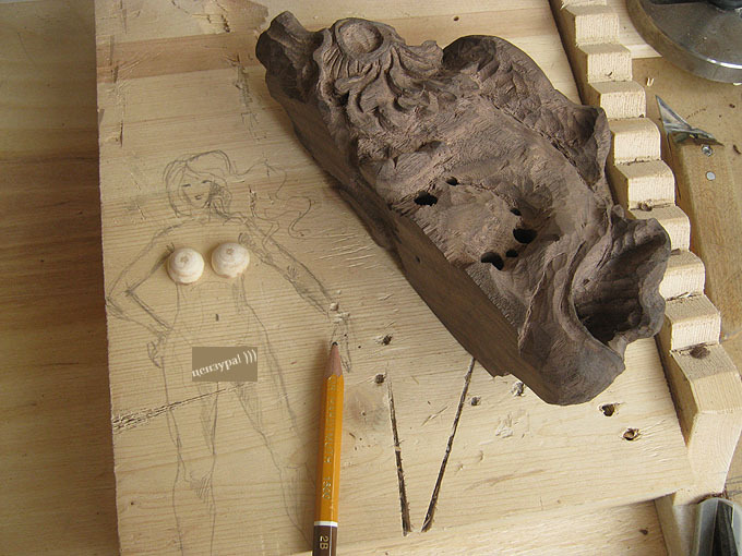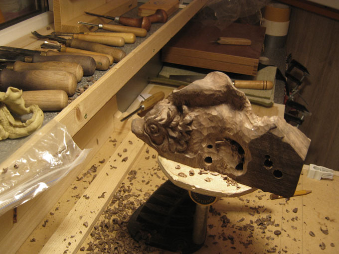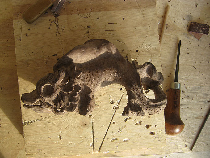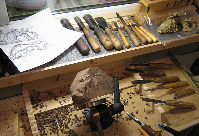 Некоторые детали меняются на ходу; с глазами подумаю, может сделаю из другого материала, если станет более-менее получаться (пока еще не уверен). И еще сложилось ощущение, что стамески об это дерево сами затачиваются, а то прочитал, что в тике много кремния и что он сильно тупит режущую кромку.