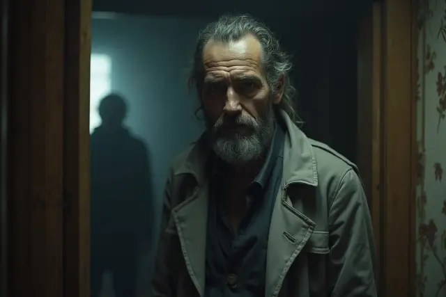 Вошёл мужчина в сером плаще, высокий, худощавый, с резкими чертами лица. Его взгляд был усталым, но твёрдым. Он остановился в дверях, и сразу стало ясно: это не случайный прохожий.