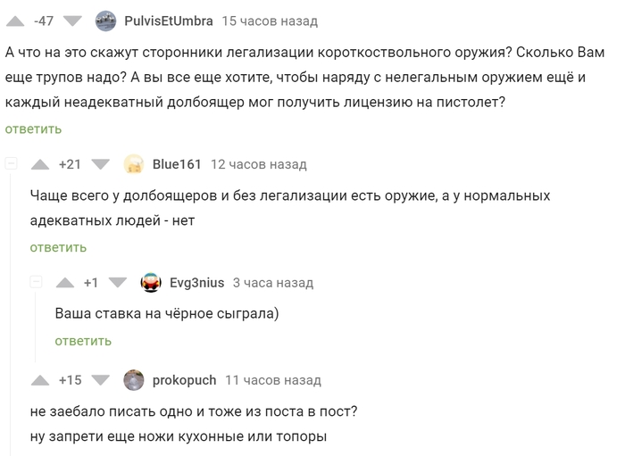 У нас даже травматическое оружие запрещать надо... А вы говорите...