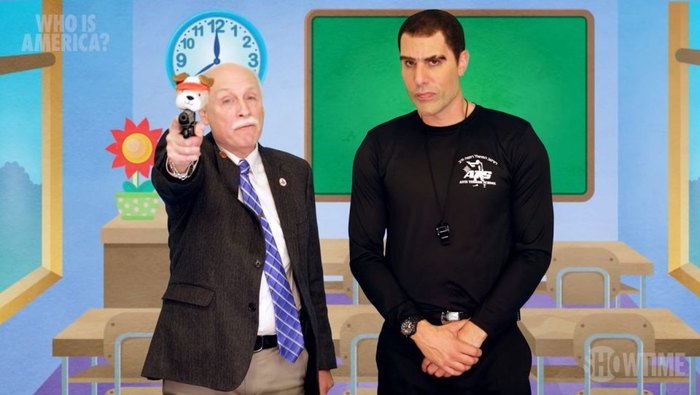 Вечером 15 июля в США прошел премьерный показ нового шоу Саши Барона Коэна «Who is America?». Актер продолжает делать то, что у него получается лучше всего – общаться с героями, выдавая себя за другого человека. Перед стартом шоу в Великобритании на YouTube появился небольшой фрагмент передачи, в котором Коэн изображает бывшего агента Моссада Эррана Морада и беседует с людьми, поддерживающими ношение оружия в США.
