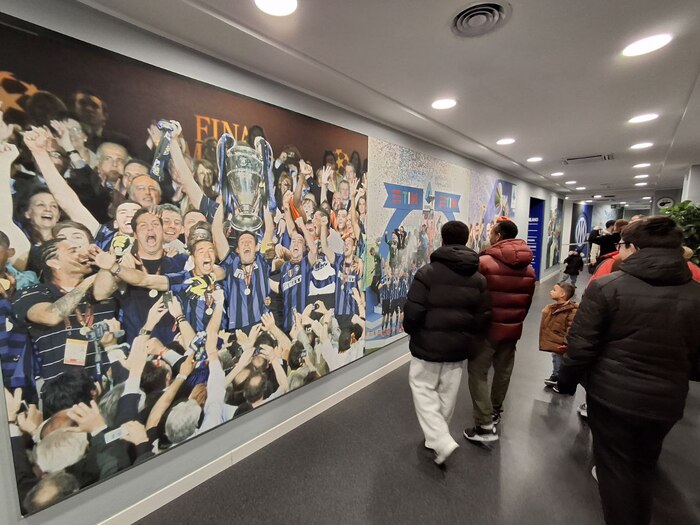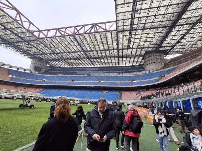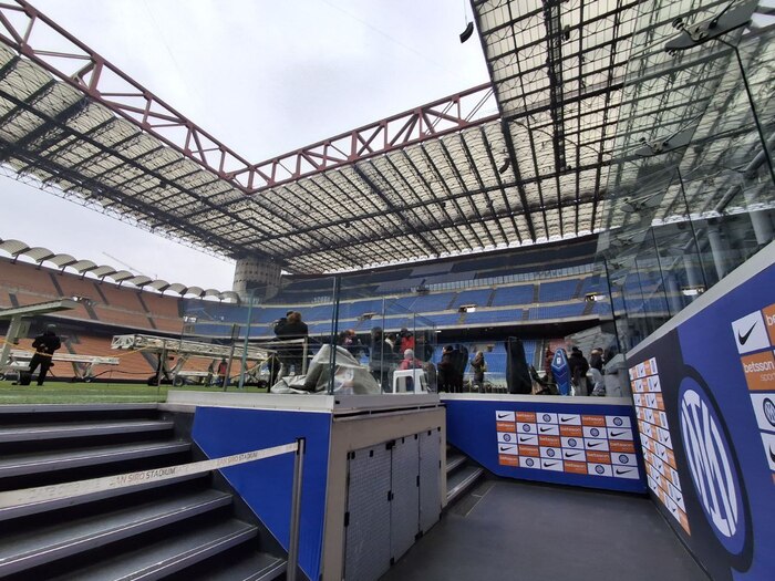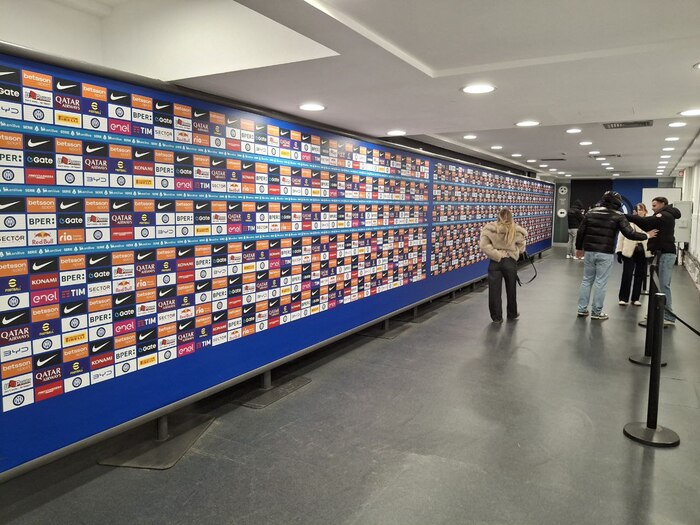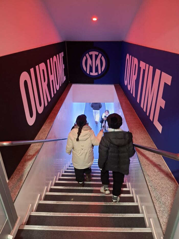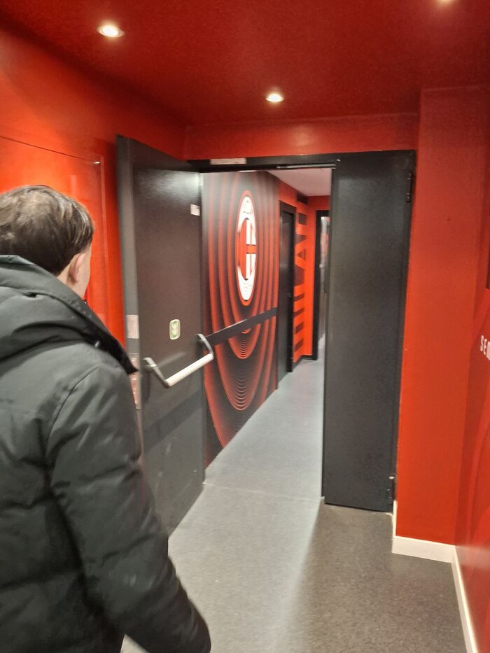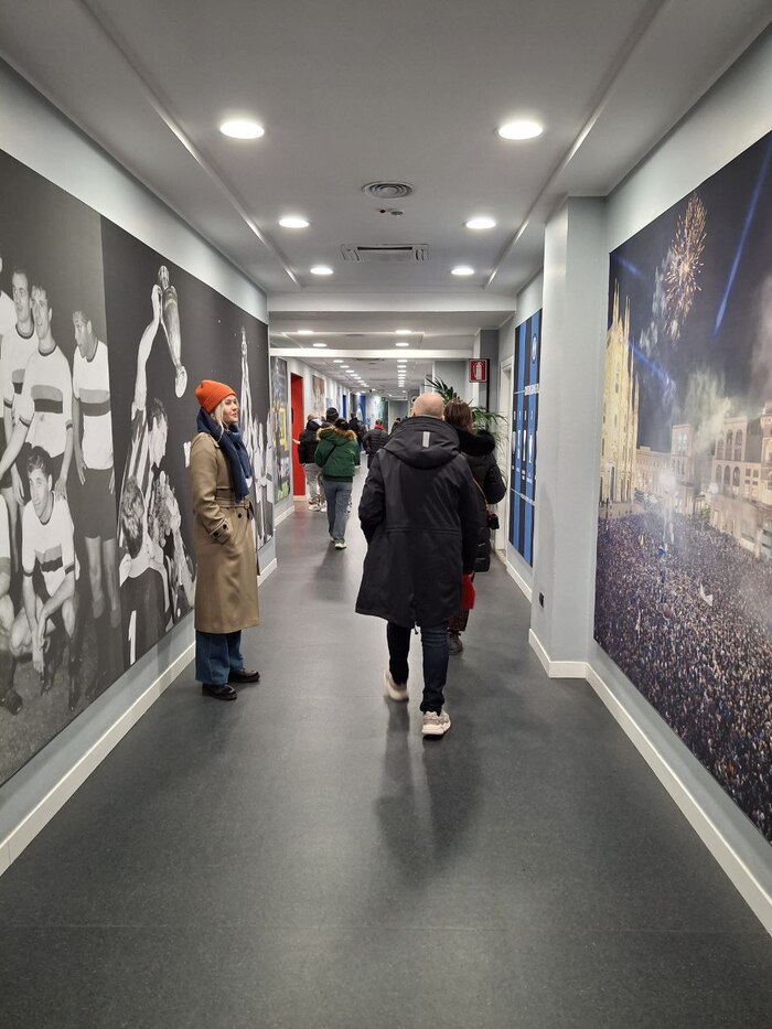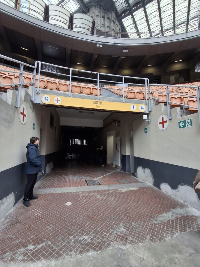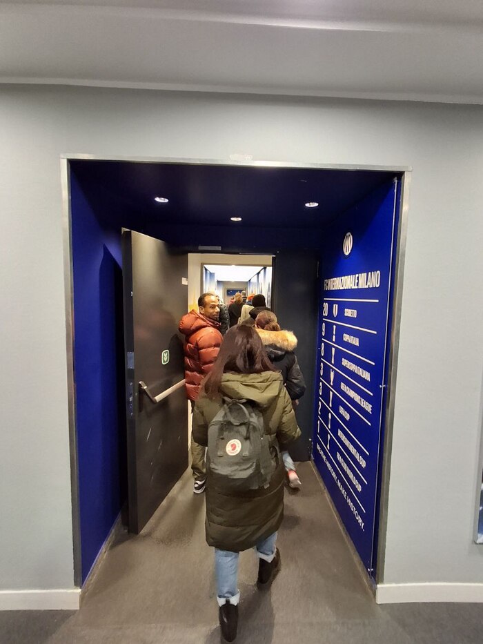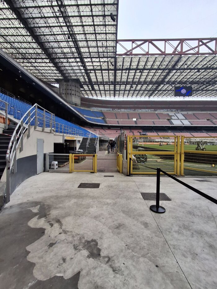 Ну да ладно, мы сюда не в музей шли, нам нужен был стадион, куда мы и отправились. Вход на стадион организован через домашний портал «Интера» или «Милана». Сначала попадаешь на ресепшн, оттуда через стойку для репортёров попадаешь в «микст зону», где футболисты и тренеры дают интервью.