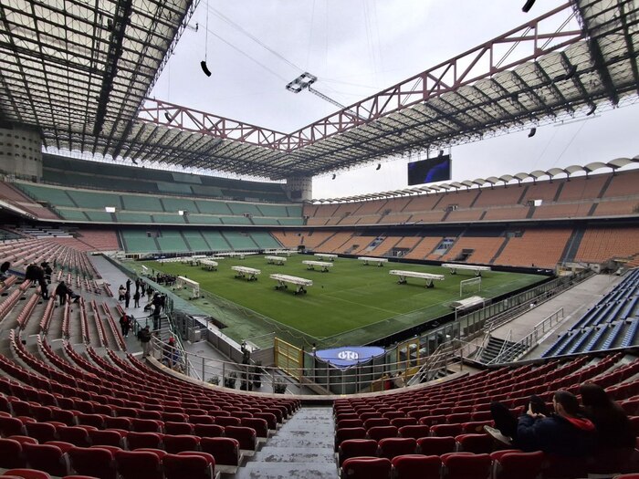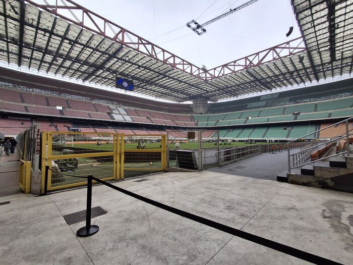 В общем, идея посетить стадион «San Siro» (также известный, как «Стадион Джузеппе Меацца») возникла у меня 27 лет назад и сидела где-то на подкорке, а буквально месяц назад я прочитал, что этот легендарный стадион собираются сносить, чтобы посторить на его месте очередной бездушный «бублик», поэтому, воспользовавшись случаем, я, оказавшись с оказией в Милане, не мог упустить возможность, скорее всего в последний раз в жизни увидеть этот шедевр архитекртуры вживую. Конечно, хотелось попасть на игру, но ни «Интер», ни «Милан» в те дни не играли, поэтому пришлось ограничиться экскурсионным туром. В этот тур входит посещение музея «Интера» и «Милана», проход по внутренним помещениями стадиона и выход на поле с возможностью посидеть на главной трибуне. Итак, обо всём по порядку.
