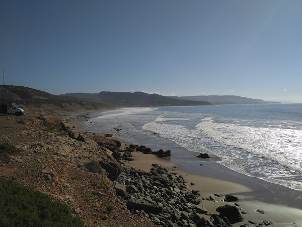 Этого верблюдовода я щёлкнул без спроса. Как только он заметил моё внимание, сразу же подошёл и стал предлагать фотосессию - 10 дирхам (примерно 75-80 рублей) за снимок. Я сказал non, merci, всячески показал, что мне было интересно снимать волны, ну а он не настаивал. Туристов много, ещё найдёт, кого покатать-пофоткать... Как я понимаю, берберы не научились у египтян блядскому аттракциону "сесть на верблюда бесплатно, слезть за деньги". Ненавязчивые. Oui - oui, non - non.