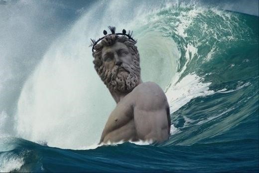 Калигула, объявив войну Посейдону, привел свои войска на пляж и приказал построиться для битвы.Наконец, как бы желая начать сражение, он расставил войска по берегу моря и приказал привезти баллисты и военные машины. Никто не знал и не подозревал, что он намерен делать. И вдруг он велел солдатам бросать пилумы и копья в воду, и бить мечами волны, после такой непродолжительной битвы, он объявил о победе, и приказал собирать солдатам раковины в шлемы и за пазуху, называя их военной добычей, которая взята у моря и должна быть принесена в Капитолий и во дворец! В память о своей необычной победой над морем он велел выстроить огромную башню. Ночью на ней, как и на фаросском маяке, должен был гореть огонь и указывать судам их курс. Солдатам император объявил награду по сто денариев на человека и, как бы подав пример необычайной щедрости, сказал: "Ступайте в веселом расположении духа, ступайте богачами!"
