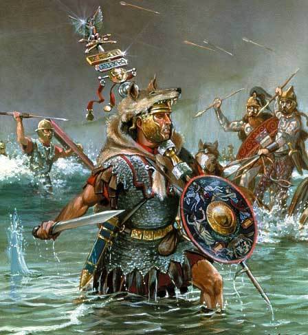 Дело в том, что в такой суматохе на берегу, никто не мог разобрать, где именно находится его подразделение. Около штандартов, которые к тому моменту уже были вынесены на берег, собиралось множество воинов в полном беспорядке, и практически каждый из них примыкал к первому попавшемуся подразделению, отражая яростно наседающих кельтов. В таких условиях, о построении легионных когорт, в которой каждый чётко знал своё место, не могло быть и речи. В результате, вместо образцовых манипул, когорт и центурий легиона, на берегу сформировывались случайные отряды, в которых не было слаженности действий. И где каждый сражался так, как умел – на свой страх и риск.