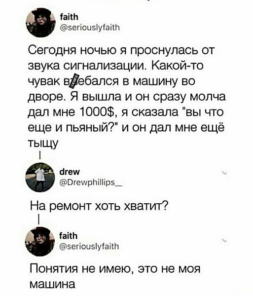 Я проезжаю по осколкам, заглядываю в салон хендая — лежит непристегнутая. Проехал дальше, думаю выходить, звонить куда, а нет: вышла девка пострадавшая в ахуе, головой крутит.