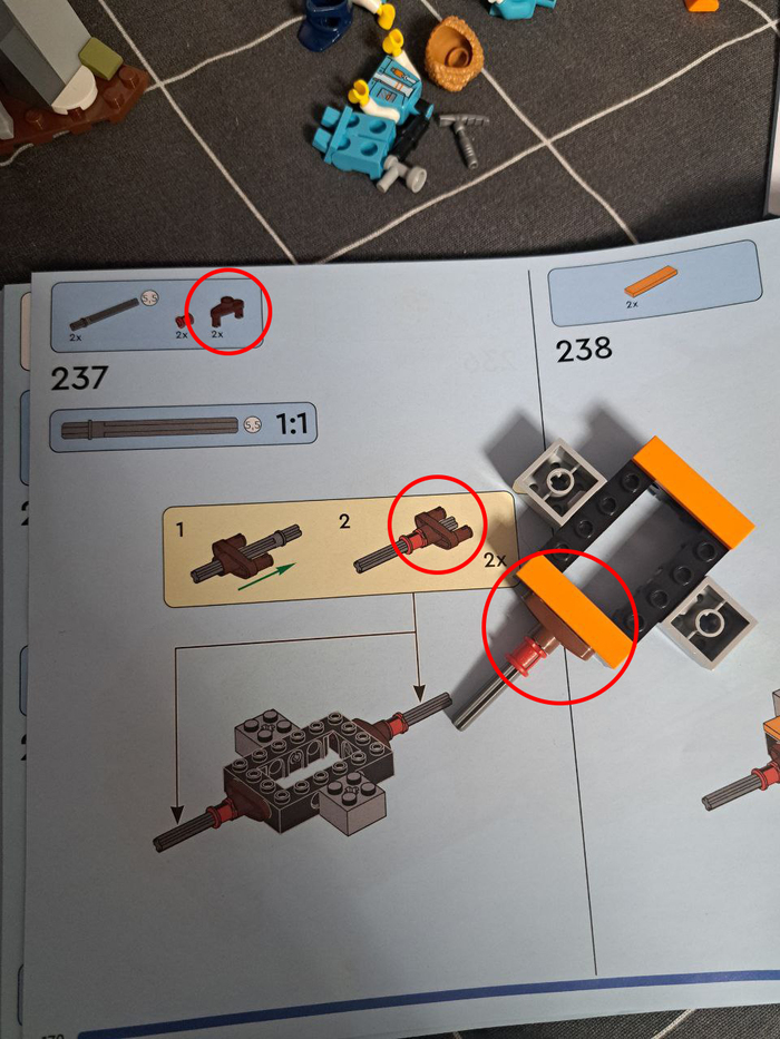 Но тут подкралась неприятность. Впервые с Лего, пусть и китайской сборки (тоже вроде как официалы, ниже объясню) мы столкнулись с недобором. Две детали из популярных, их нашли из домашних запасов, а вот одна деталька оказалась достаточно редкой. Перерыли всё, да и фиговина специфическая, даже рядом стоящих наборов не покупали. Даже китайских-популярных ноунейм.