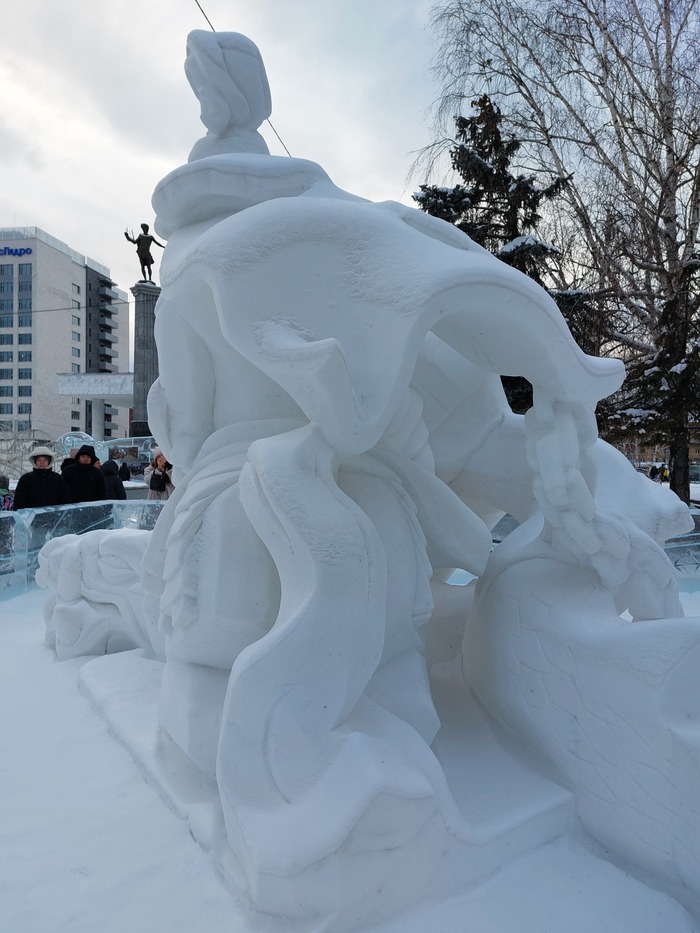 Выкроил время, сходил на площадь Орджоникидзе и сфоткал эти скульптуры - скоро растают, жалко что не сохранятся (а так - интернет не даст ничего забыть).