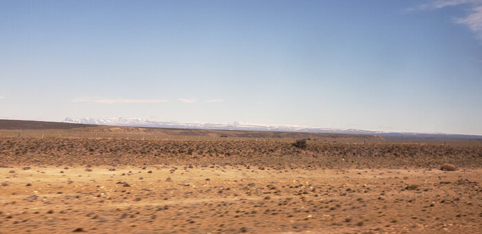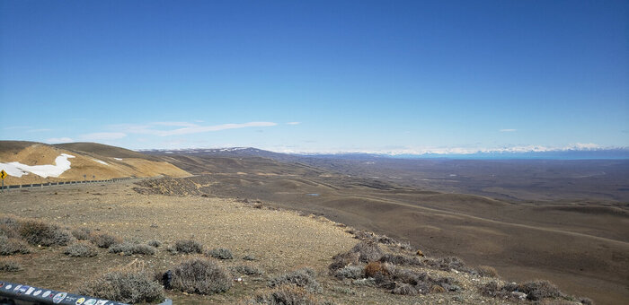 Подъем в 7 утра. И около 8 утра выехали в дорогу в город Эль Калафате. Дорога проходит на высотах около 800 метров. Вдоль дороги иногда лежит снег... вот это поворот.