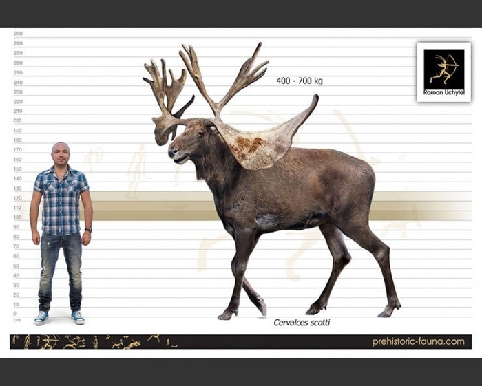 Ну и гигант Cervalces latifrons Широколобый олень. Самый крупный из вымерших, крупнее чем Scotti , и Megalocerus. Весил до 1000 кг.