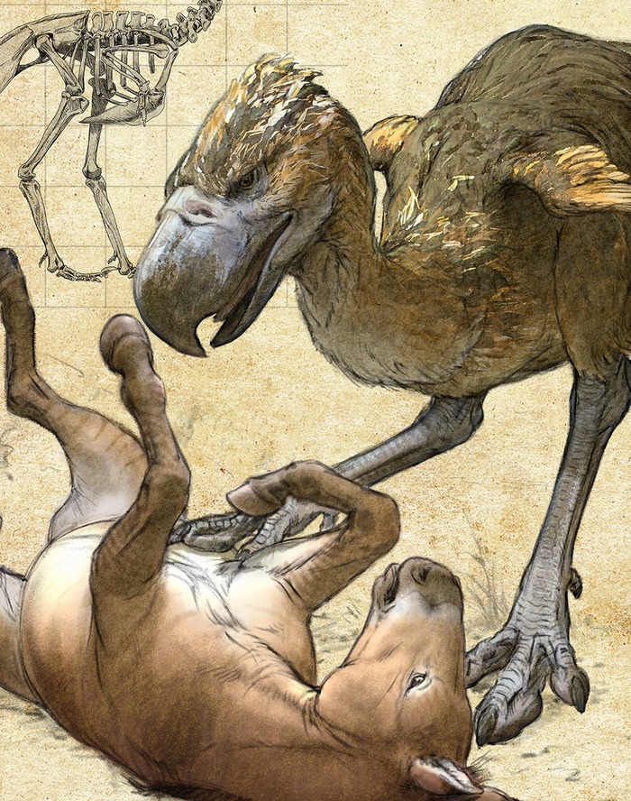 Вполне вероятно, что Птица Ужаса использовала свой тяжелый, мощный клюв в качестве оружия, обрушив его на шею или спину ее добычи с большой силой.