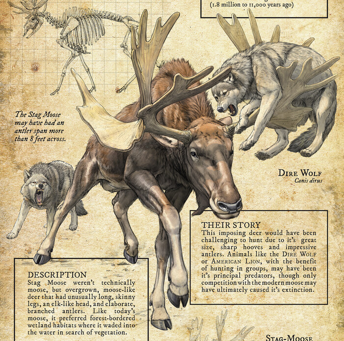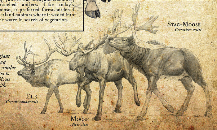 Этот гигантский олень имел много сходных черт с оленем и лосем.