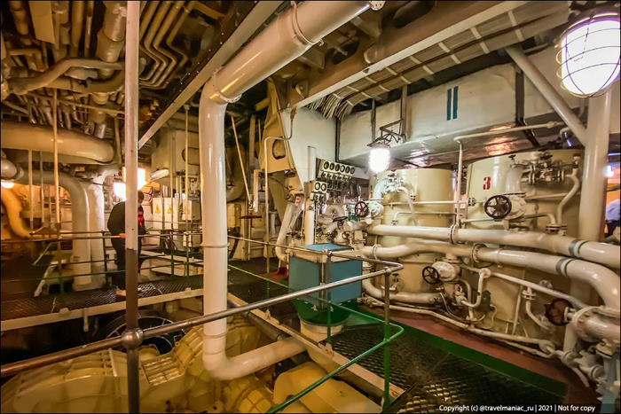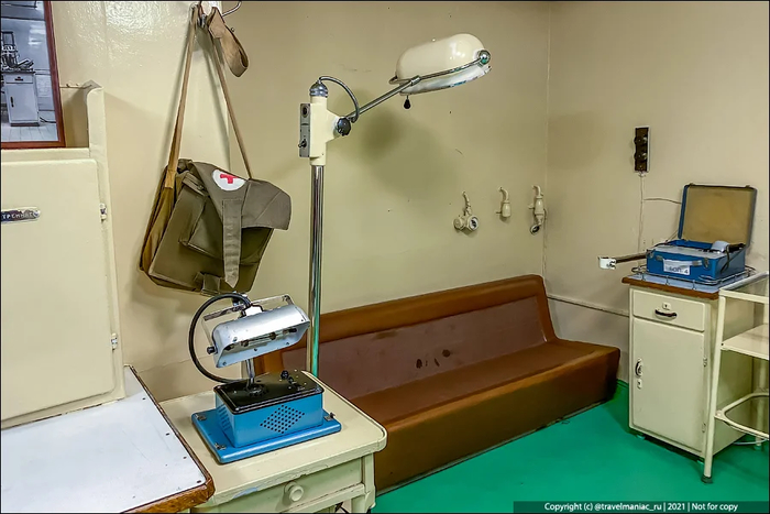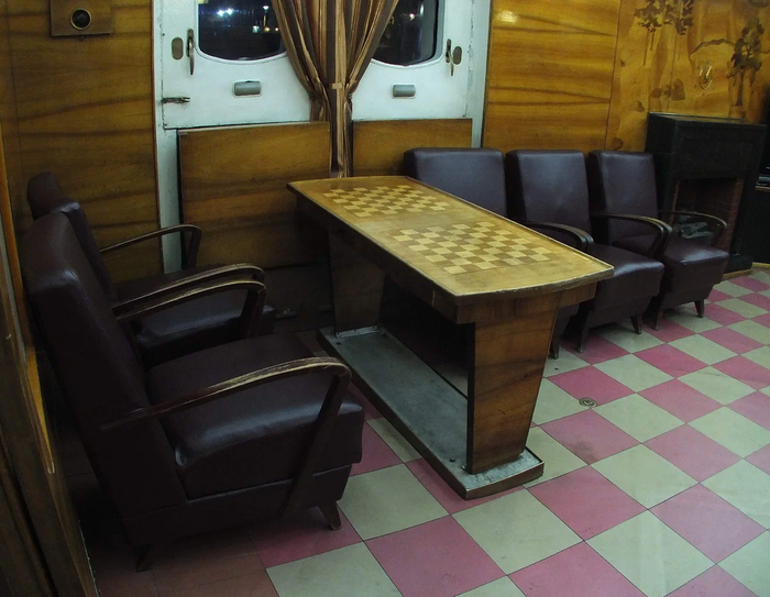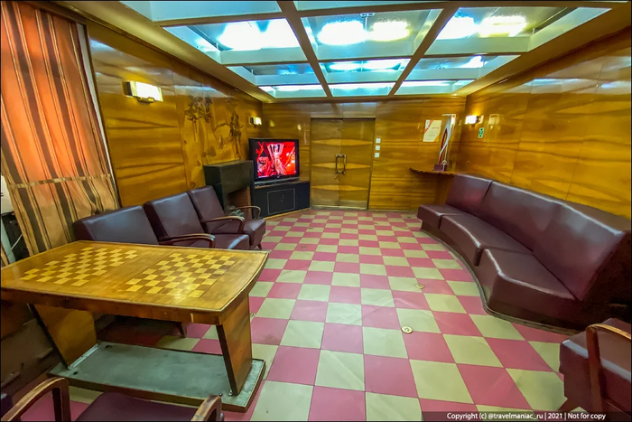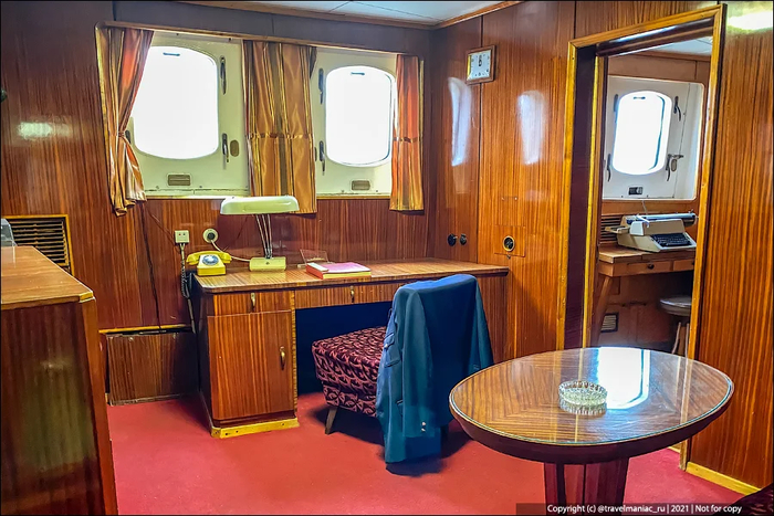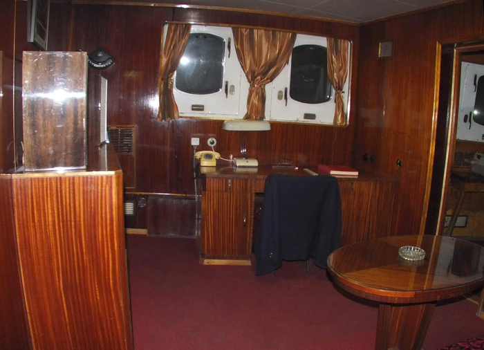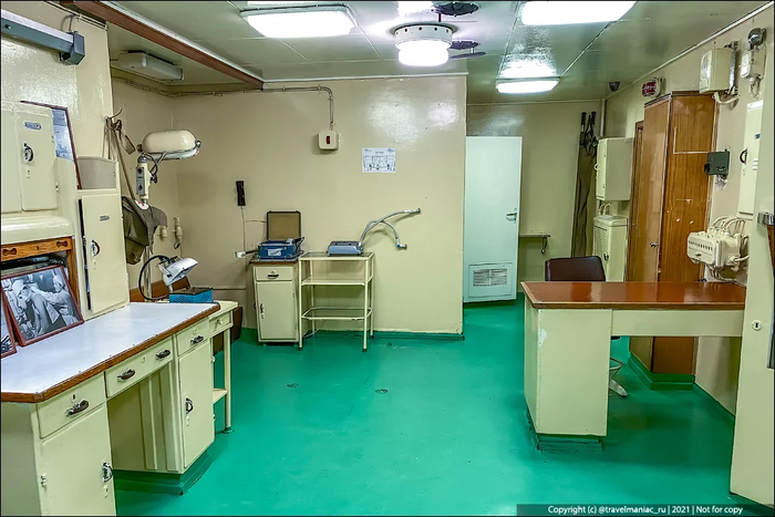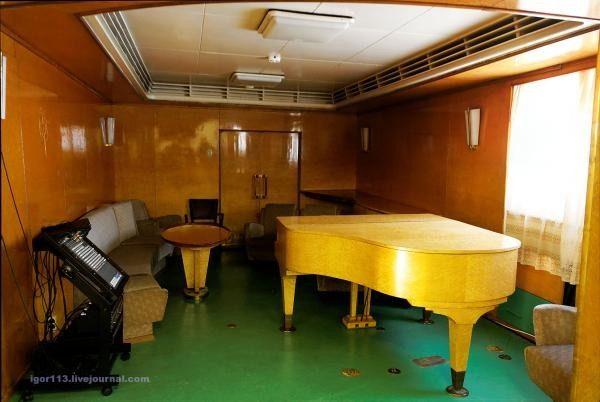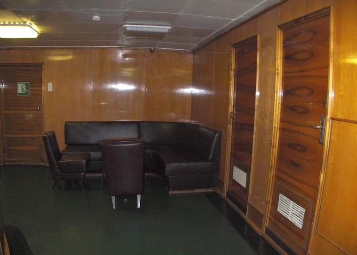 На судне также имелись клуб, салон отдыха, библиотека с читальным залом, кинозал, несколько столовых и курительный салон. Все эти помещения были отделаны дорогими породами дерева, а в кают-компании имелся камин. Имелись на корабле и медицинские кабинеты – терапевтический, зубоврачебный рентгеновский, физиотерапевтический, операционная, процедурная, лаборатория и аптека.