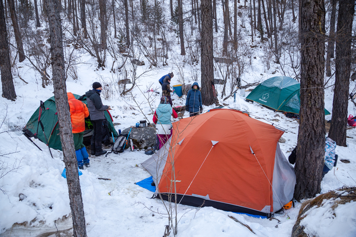 Каньон реки Средний Иркут навсегда остался в моей памяти как одно из самых красивых мест на маршруте. Отвесные стены, узкие проходы, вода стекающая по стенам и звук самой реки доносящийся из подо льда, по которому шла группа. Это было невероятно завораживающе!
