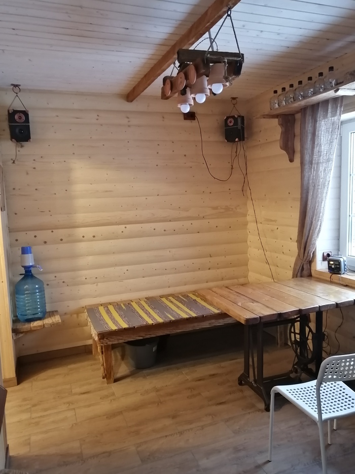 Интерьерное видение комнаты отдыха в моей бане, требует аутентичности в любых мелочах.Так как было принято решение, все предметы интерьера делать своими руками, светильник в с\у , светильник в предбаннике, вешалка при входе в комнату отдыха , от устоявшихся принципов отказаться нет возможности.