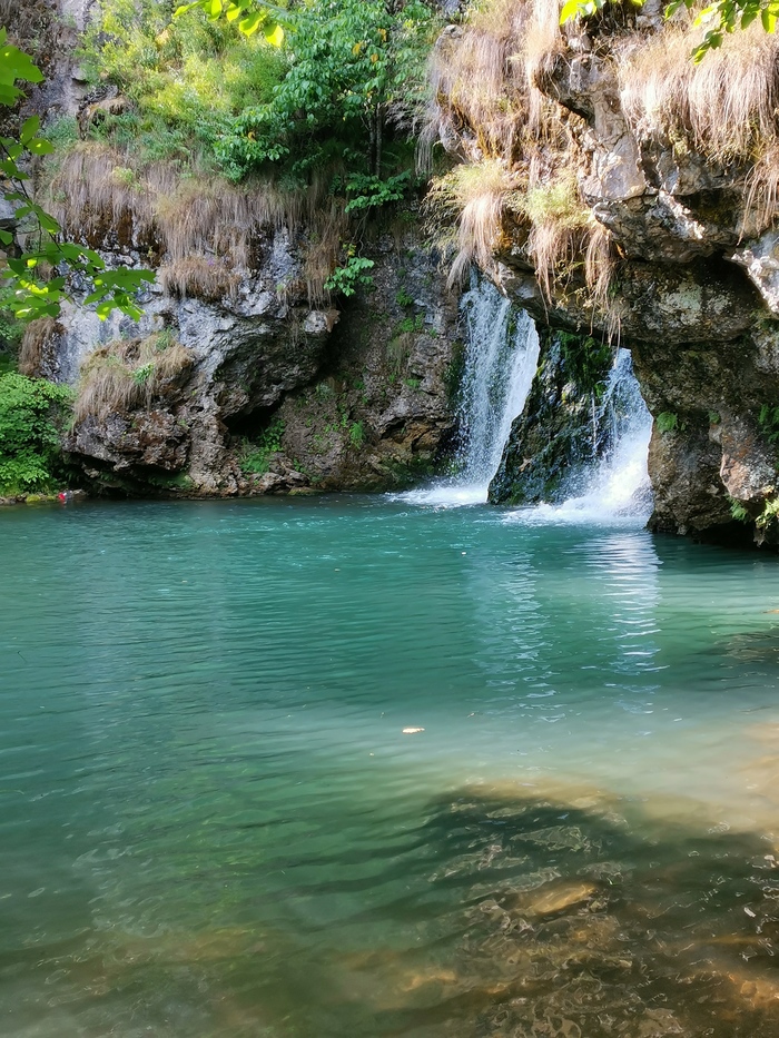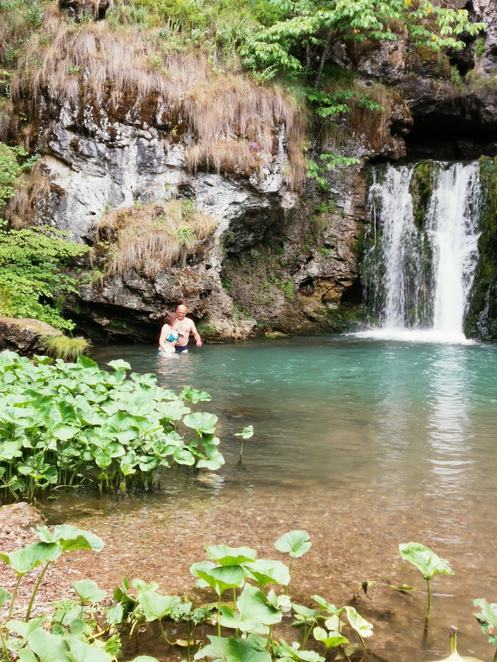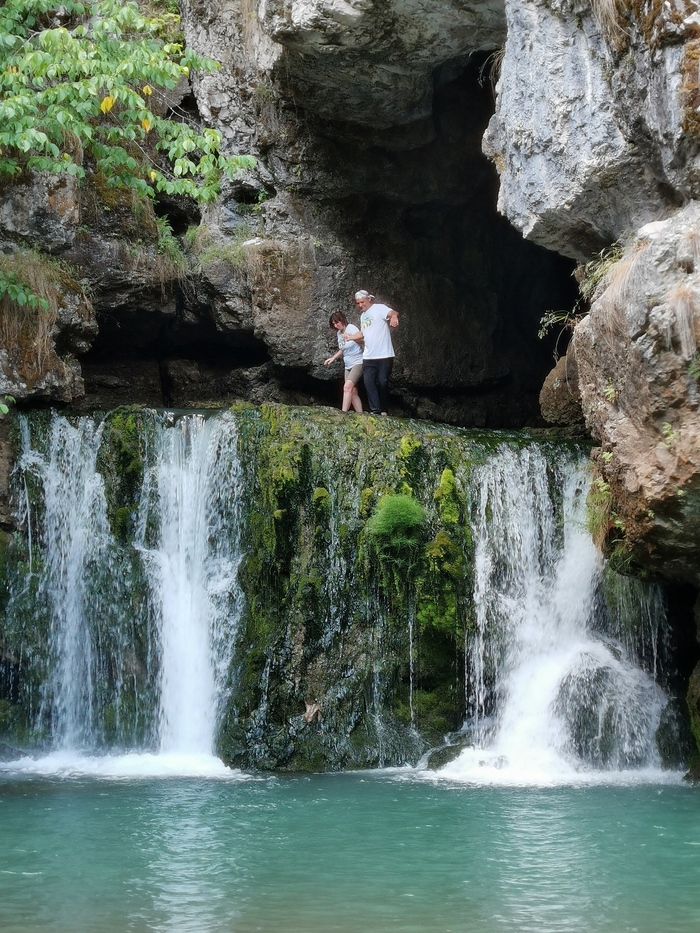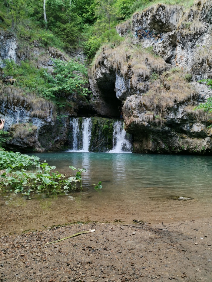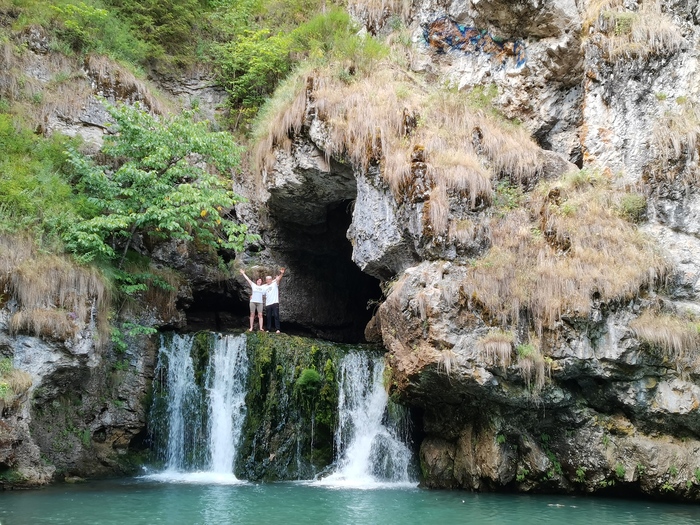 Стой!!! Тише!!! Прислушайся. Слышишь? Да да да! Это звуки водопада. Мы уже рядом. Сначала мы увидели грот на высоте около 3 метров, а чуть дальше мы увидели и сам водопад. Это просто бомба!!! Я поднялся в грот, там очень просторно, есть несколько уровней. Пройдя на нижний уровень прямо из скалы начинает течь вода, чтобы пройти на край водопада, нужно через нее. Вода ледяная. "... И вот я стою на краю водопада... " вспомнились мне строчки Бутусова))) В этот момент ты получаешь энергию природы. Забываешь обо всем. О том что встал гораздо раньше обычного, прошел с тяжёлым рюкзаком такой путь, о том что ноги в ледяной воде. Просто стоишь и сердце замирает.