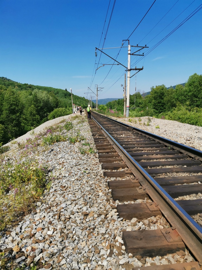 Мы вышли к путям в 10:45. Это было отличное время. Нам хватило чтобы переодеться в сухую одежду, сухие боты лежали в машине, спокойно отдохнуть, кто то даже успел перекусить вновь. А я сидел и думал на безграничными возможностями нашего организма. По итогу мы прошли этот путь за 4 часа 20 минут. Да да, стартовали мы конечно позже чем планировали.
